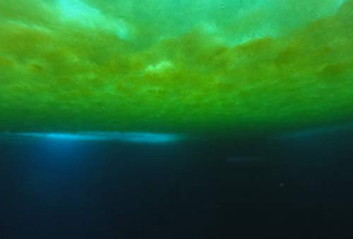 Photo: The green underside of sea ice. US Embassy in New Zealand (public domain).